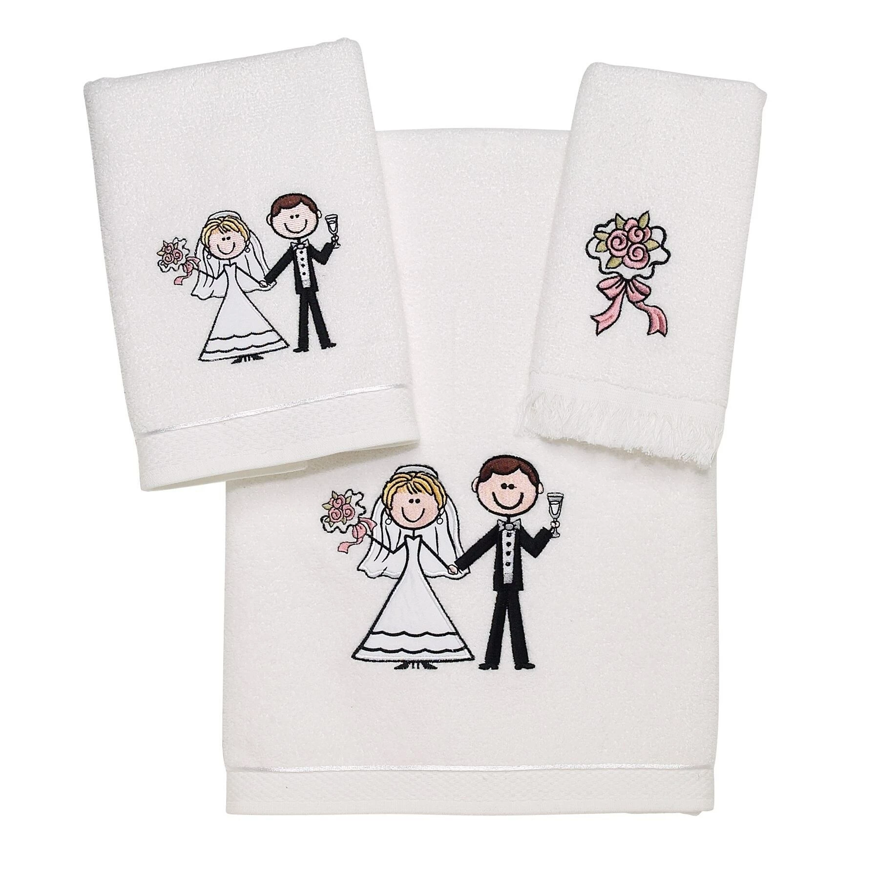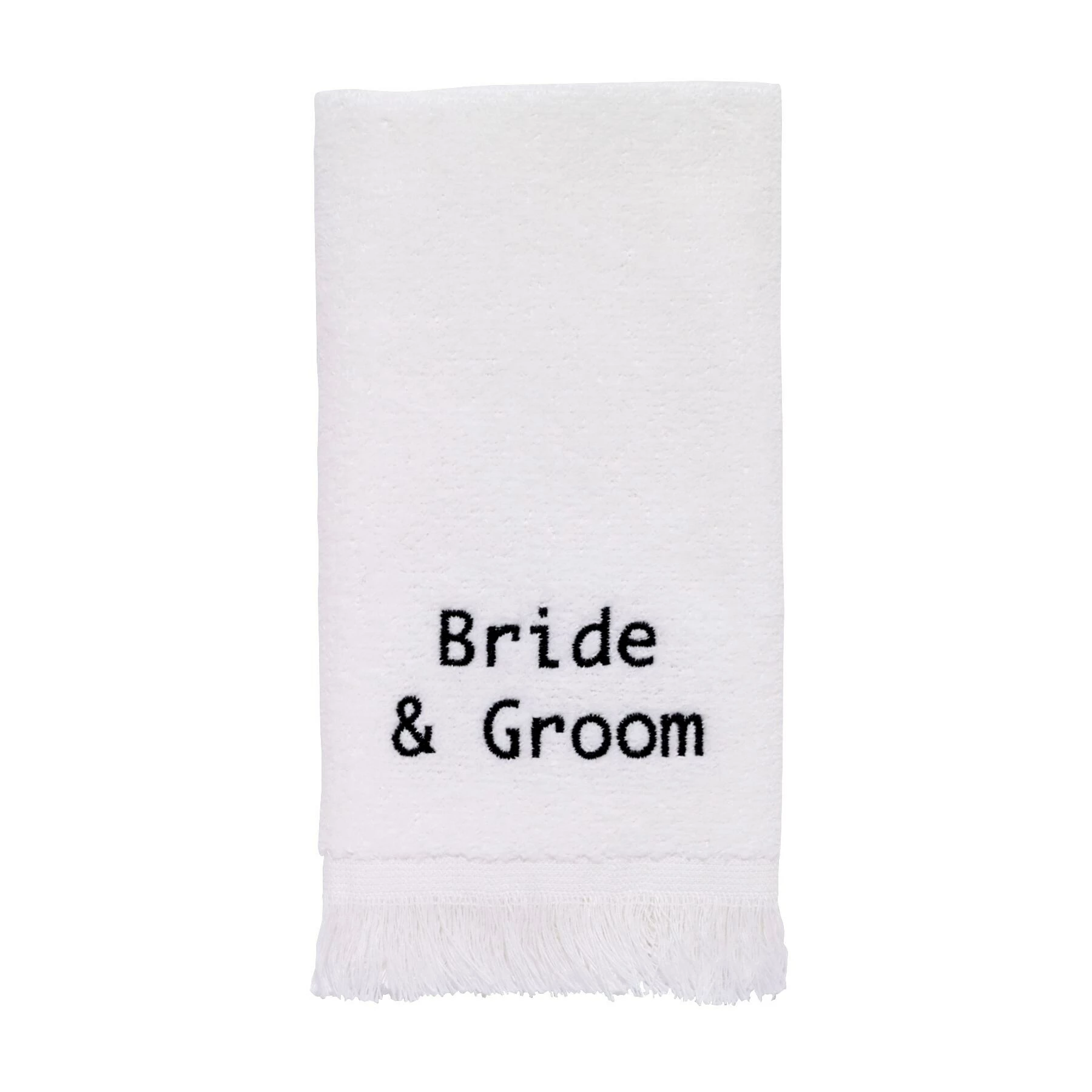 Whimsically embroidered with the happy couple and “Bride & Groom” on a 100% cotton white towel, the Avanti Bride & Groom Bath Towel is the perfect shower or wedding gift.