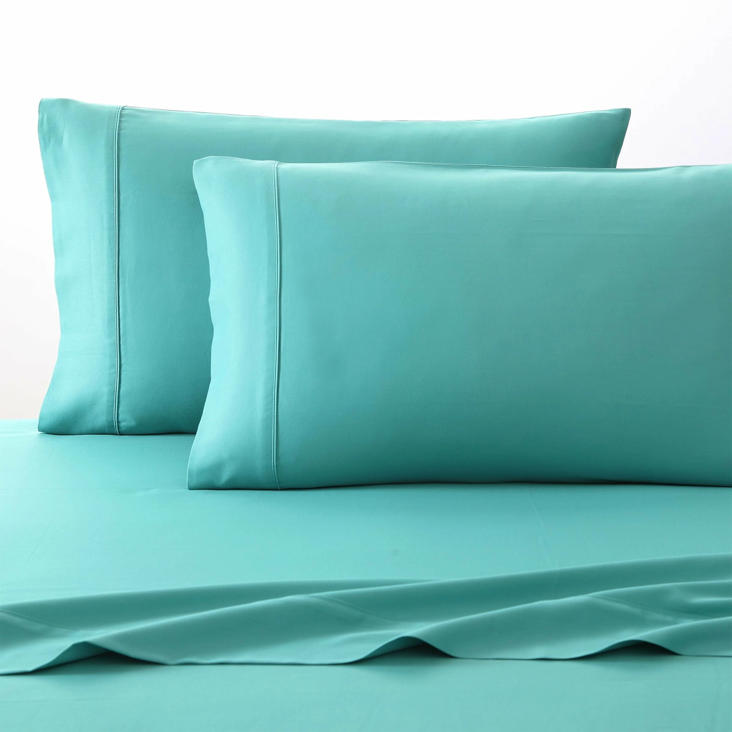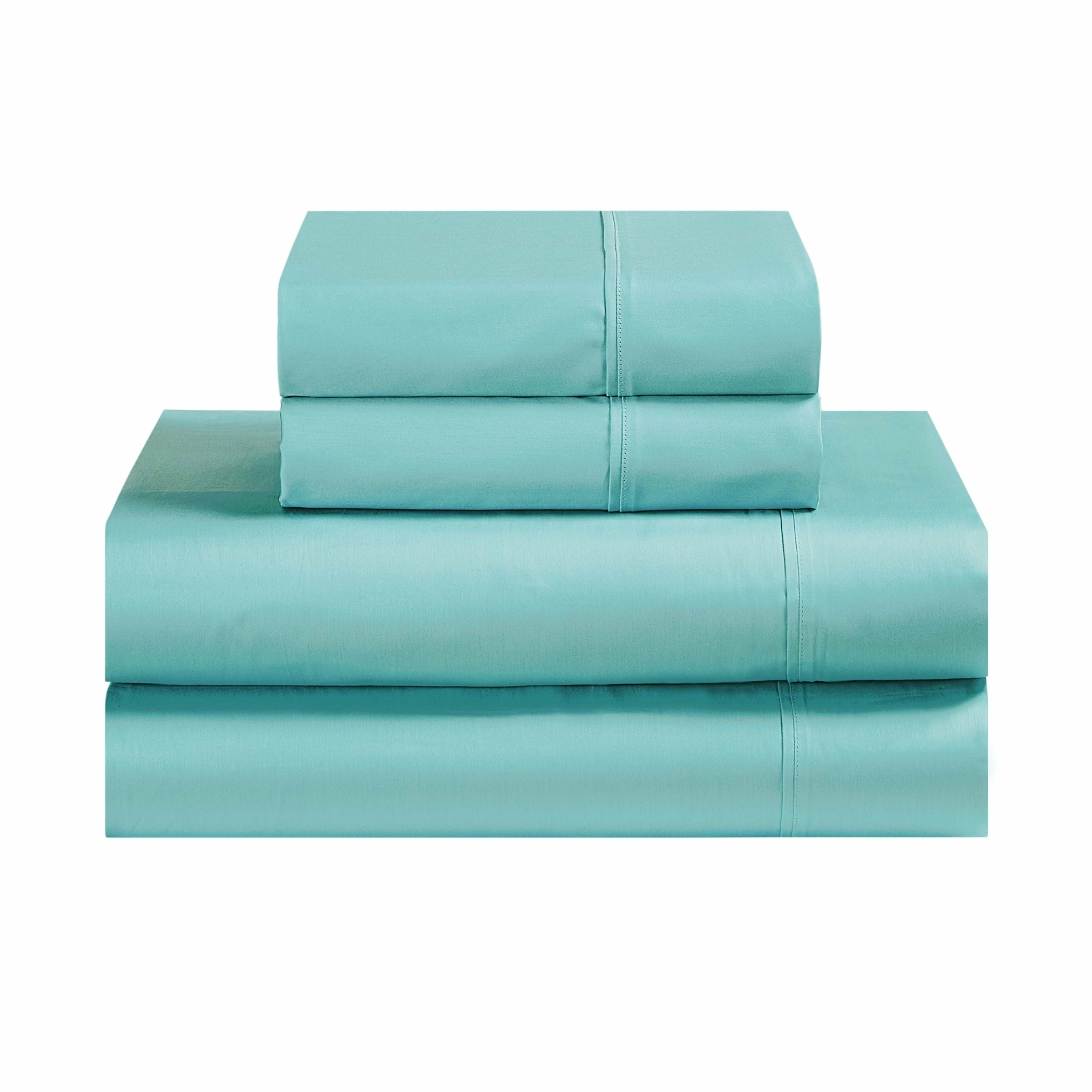 The Fiestaยฎ 300 Thread Count Sateen Turquoise Full Sheet Set delivers a smooth, soft, silky feel. The single-ply 100% cotton sateen weave brings more of the threads to surface, giving that cool and lustrous finish. Set includes one flat and fitted sheet, 2 standard pillow cases. Imported.