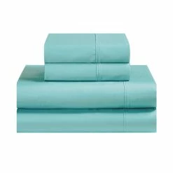 The Fiestaยฎ 300 Thread Count Sateen Turquoise King Sheet Set delivers a smooth, soft, silky feel. The single-ply 100% cotton sateen weave brings more of the threads to surface, giving that cool and lustrous finish. Set includes one flat and fitted sheet, 2 king pillow cases. Imported.