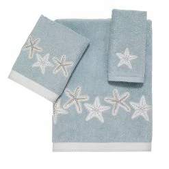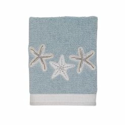 With beautifully embroidered starfish on white applique fabric and coordinating fabric border on a 100% cotton mineral terry towel, the Avanti Sequin Shells Hand Towel adds an understated touch of the sea to any bath dรฉcor.