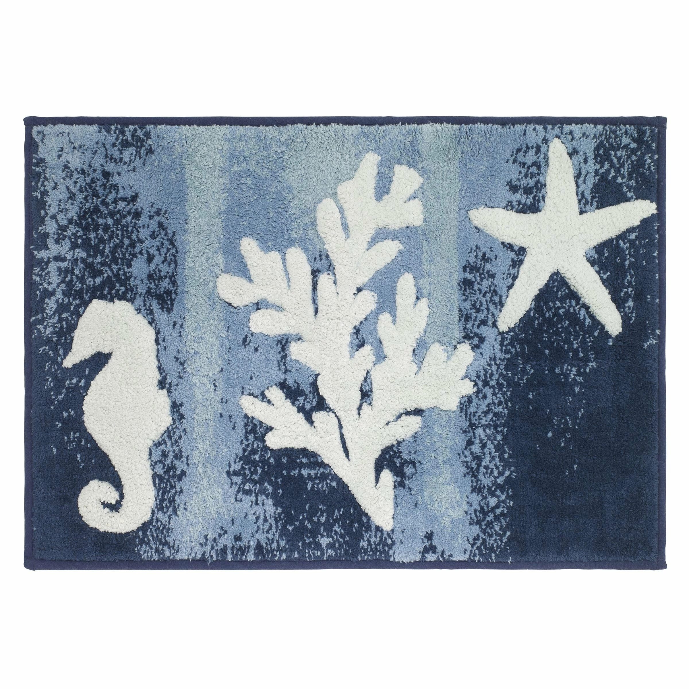 The Avanti Batik Coastal Collection 13-Piece Shower Curtain and Hook Set features a printed ombred blue and white seascape on a 100% polyester, 72 x 72 in cloth. The hooks include 3 different sea icons made of hand-painted resin. Set includes one shower curtain and 12 hooks. Imported.