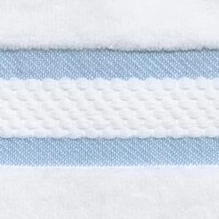 The Avanti Beach Mode Hand Towel is decorated with embroidered ocean icons-coral and a seahorse-on an ombred navy blue-to-white jacquard ground. Made of 100% cotton, 16 x 28 inches. Coordinates perfectly with the matching shower curtain, shower curtain hooks and bath rug. Imported.