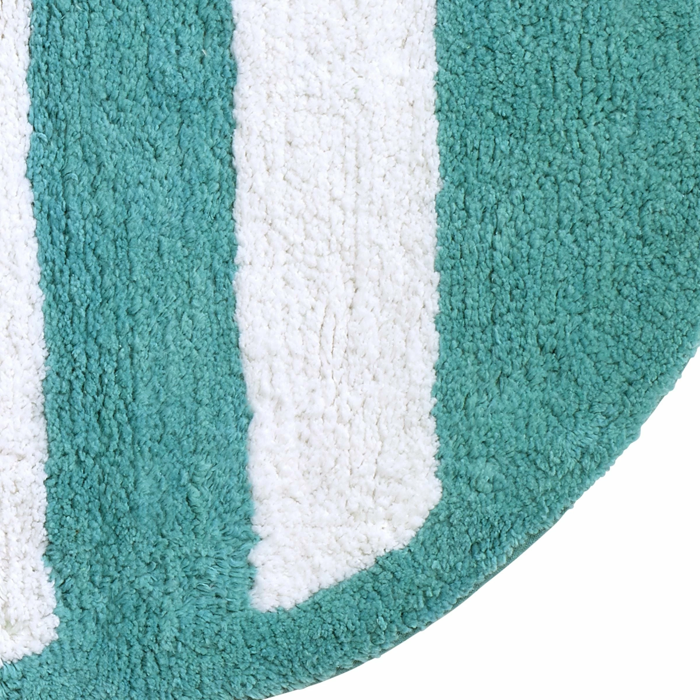 The Avanti Beach Mode Collection Bath Rug is shaped like a green and white flip flop. Hand-tufted in 100% cotton, 20 x 35 inches with non-slip backing. Coordinates perfectly with the matching shower curtain, accessories and towels. Imported.