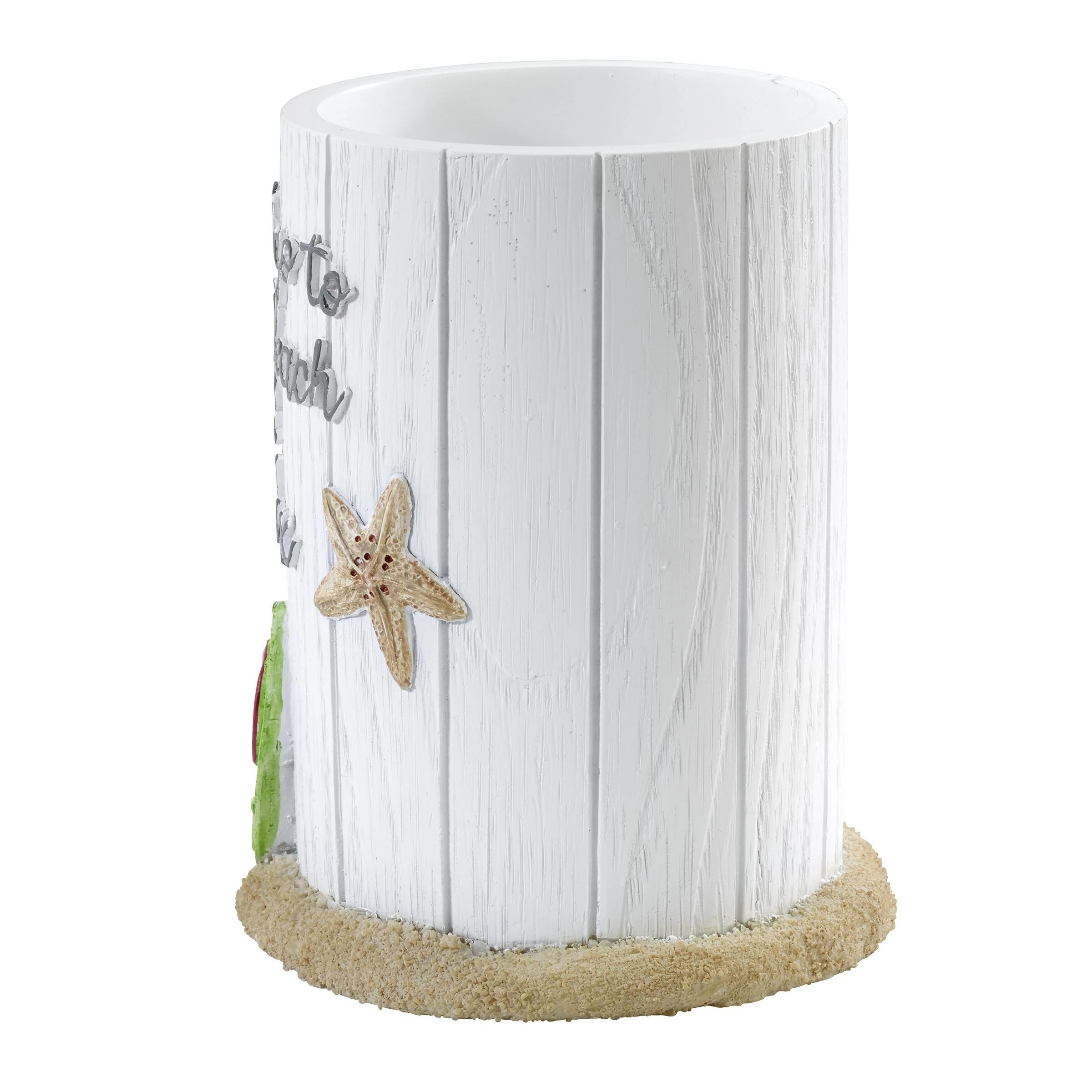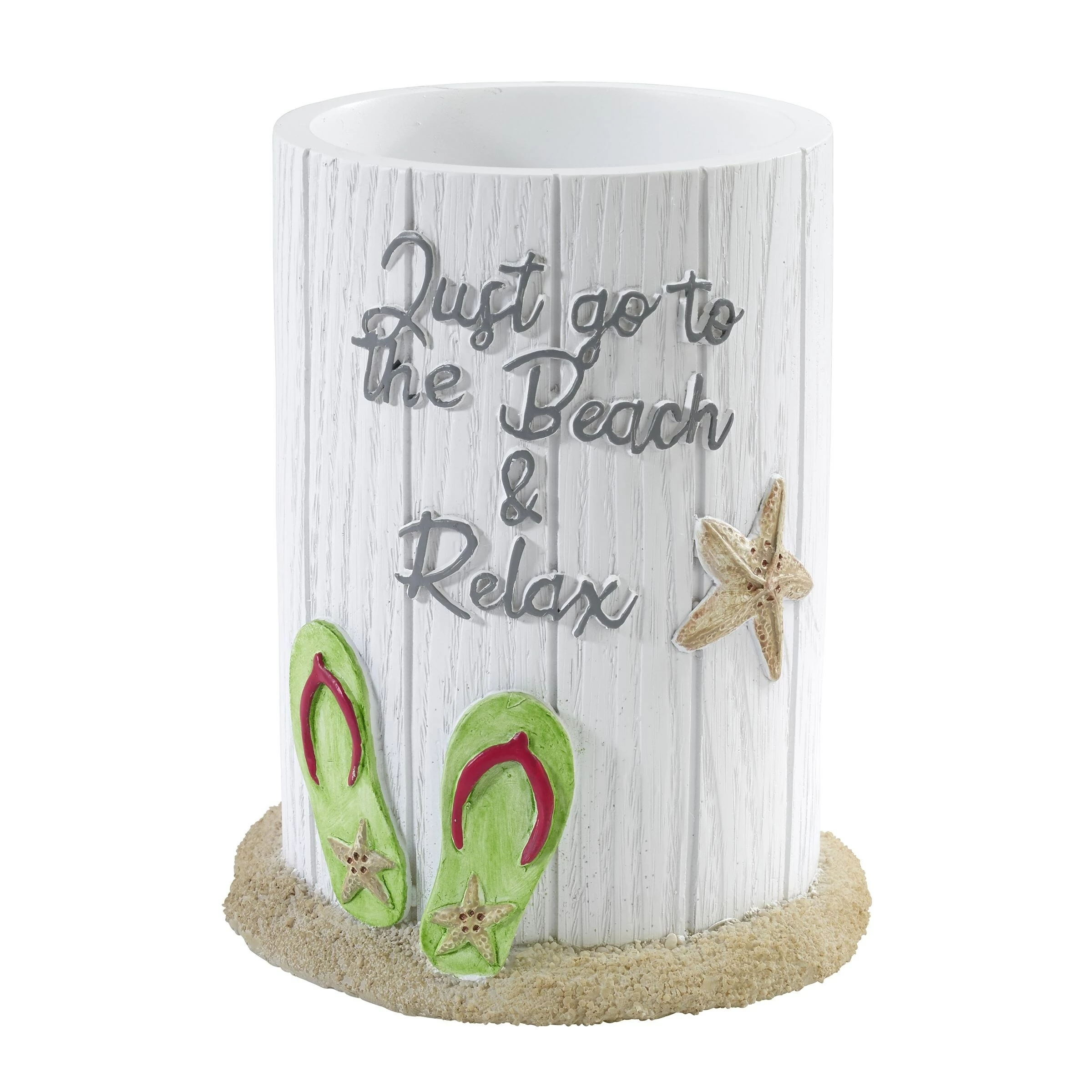 The Avanti Beach Mode Collection Tumbler says “just go to the beach and relax” on a white shiplap ground. Made of durable, hand-painted resin, a pair of green flip-flops, a starfish and a base made of realistically-looking sand finish the look. Coordinating pieces available. Imported.