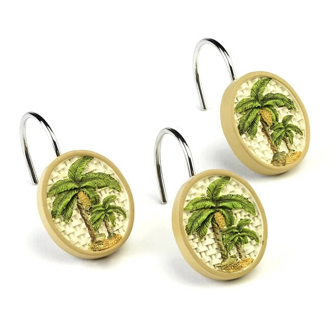 Complete your tropical-themed home decor with this set of palm tree shower hooks. The detailed tropical scene will really play up your coastal home decor, add a touch of island flair to your bathroom.ย