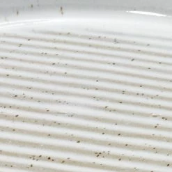 The Avanti Drift Soap Dish features a textured ribbed look with alternating glossy white and linen lines on the body with a solid linen textured matte base. Made out of sand clay with white glaze. Full coordinating bath accessory collection is available. Imported. ย ย ย