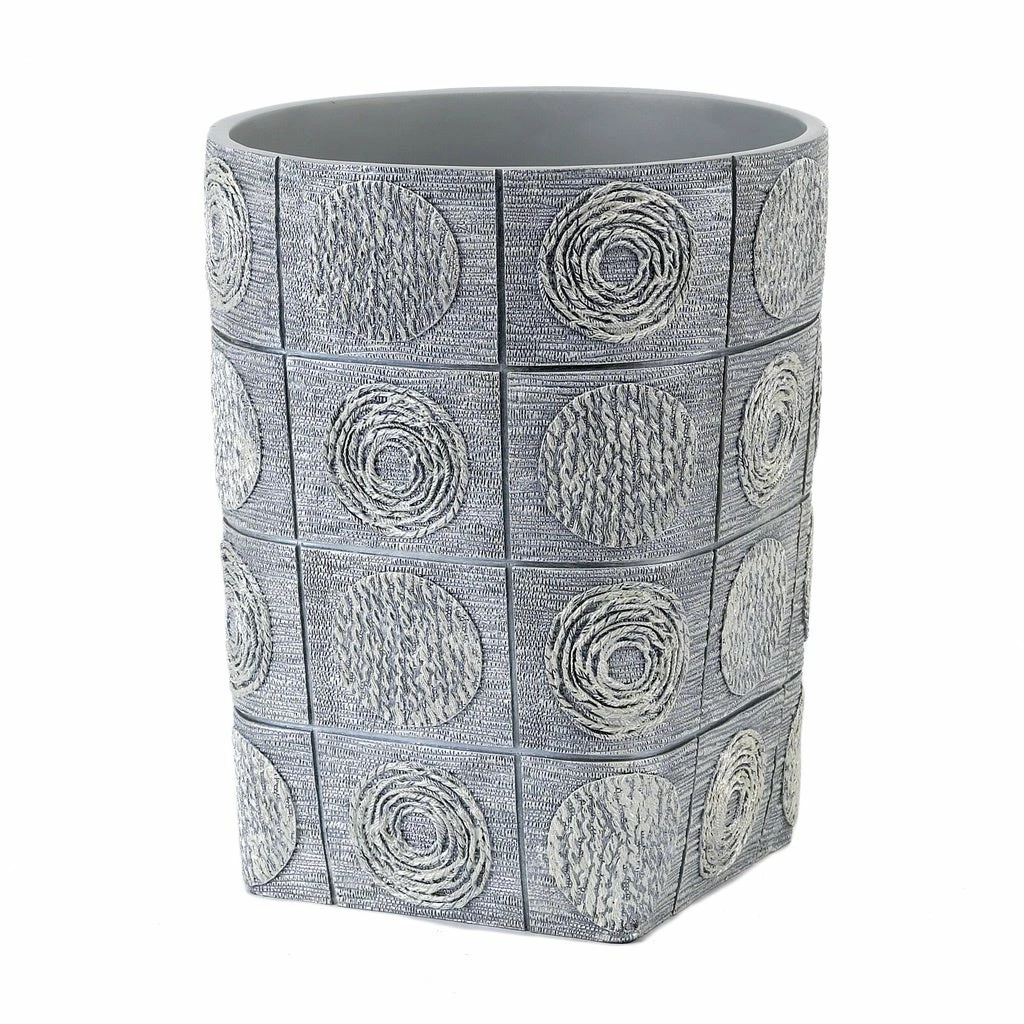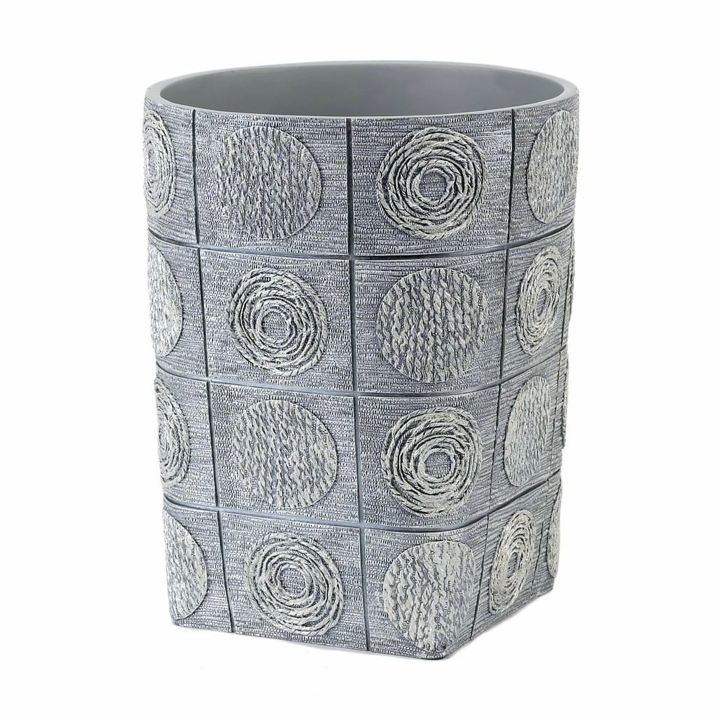 Detail your bathroom with this beautiful grey resin wastebasket. Galaxy is a contemporary tonal bath accessory group in various shades of silver. The design faithfully reproduces the pattern of circles.