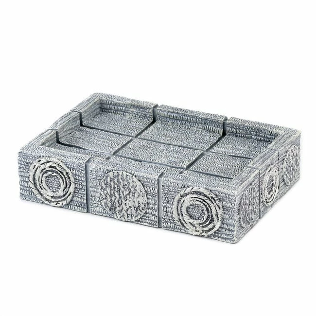 Detail your bathroom with this beautiful silver resin soap dish. Galaxy is a contemporary tonal bath accessory group in various shades of silver. The design faithfully reproduces the pattern of circles.