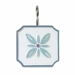 The Avanti Garden View Collection Shower Curtain Hook Set features 2 different designs-flowers and trellis in shades of blue and green. Made of durable hand-painted resin and coordinates perfectly with the matching shower curtain, accessories, towels and rug. Set of 12, 6 of each design. Imported.