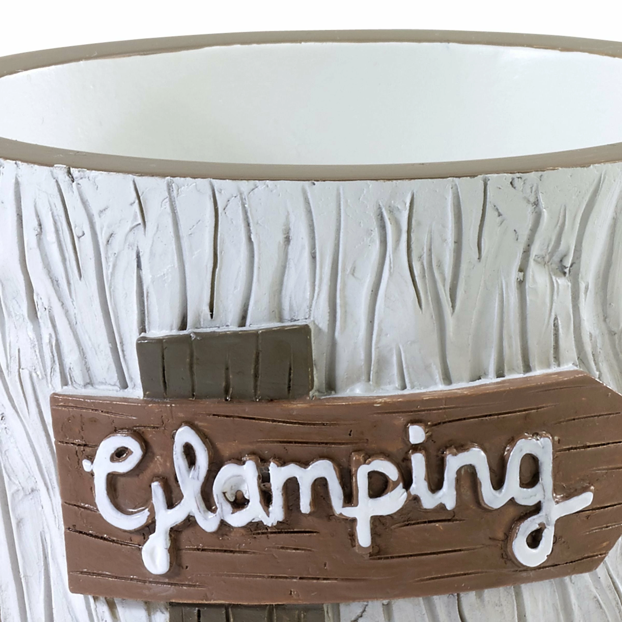 The Avanti Gone Glamping Collection Tumbler features directional signs that say “Glamping” and “Happy Place” on a faux carved wood ground. Created in incredible detail in hand-painted resin. Fully coordinating bath accessories, shower curtain, towels and rug also available. Imported.