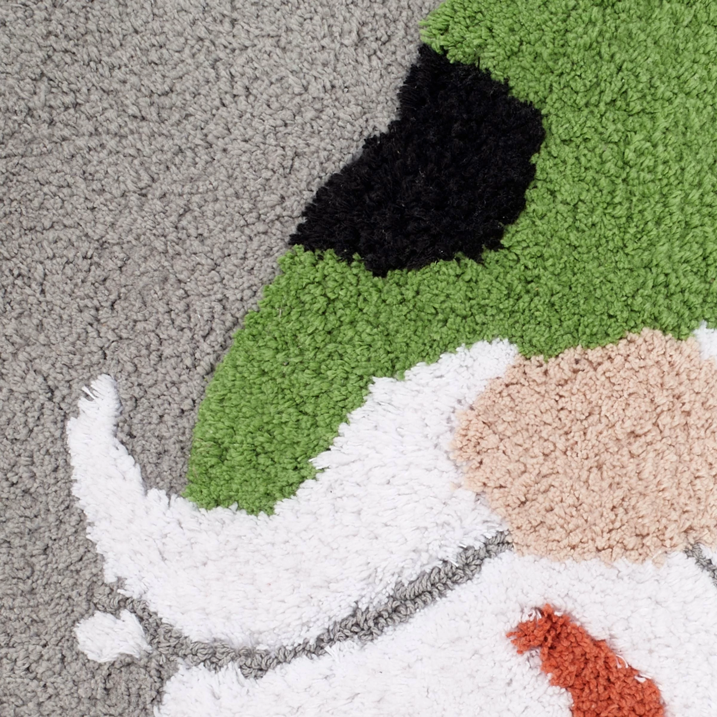 The Avanti Green Gnome Decorative Bath Rug features a white-bearded gnome with green hat with black polka dots holding an orange pumpkin on a grey ground. Adds a perfect touch of the Halloween cheer to any bathroom, kitchen, mudroom or hallway. 100% tufted cotton, 20″ x 32″ with latex non-skid back.