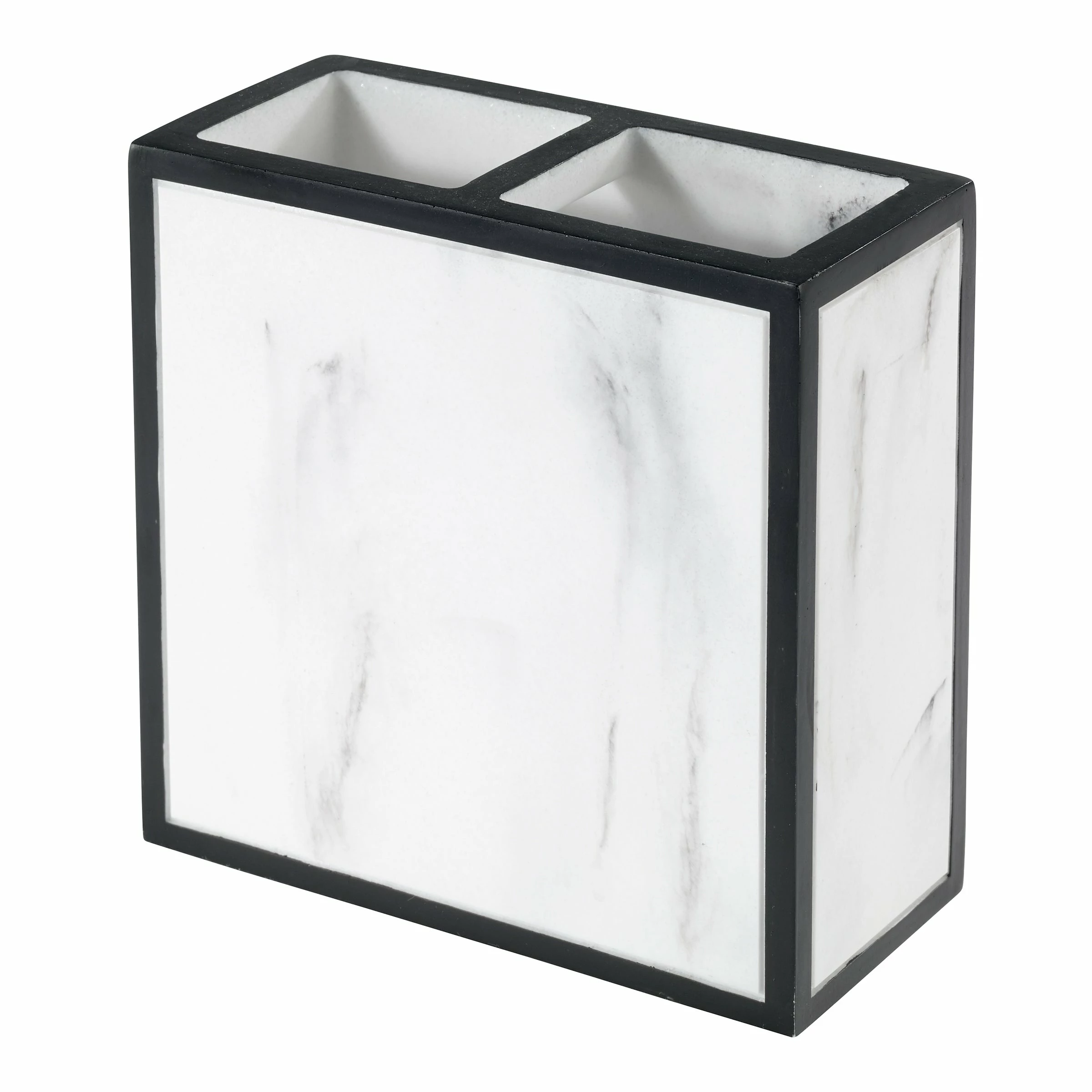The Avanti Jasper Toothbrush Holder delivers a clean, updated look with a square, marble-look body framed with a thin black line on all sides. Made of durable resin for easy care and long life. Perfect for any bathroom, kitchen, office or any room in the house.