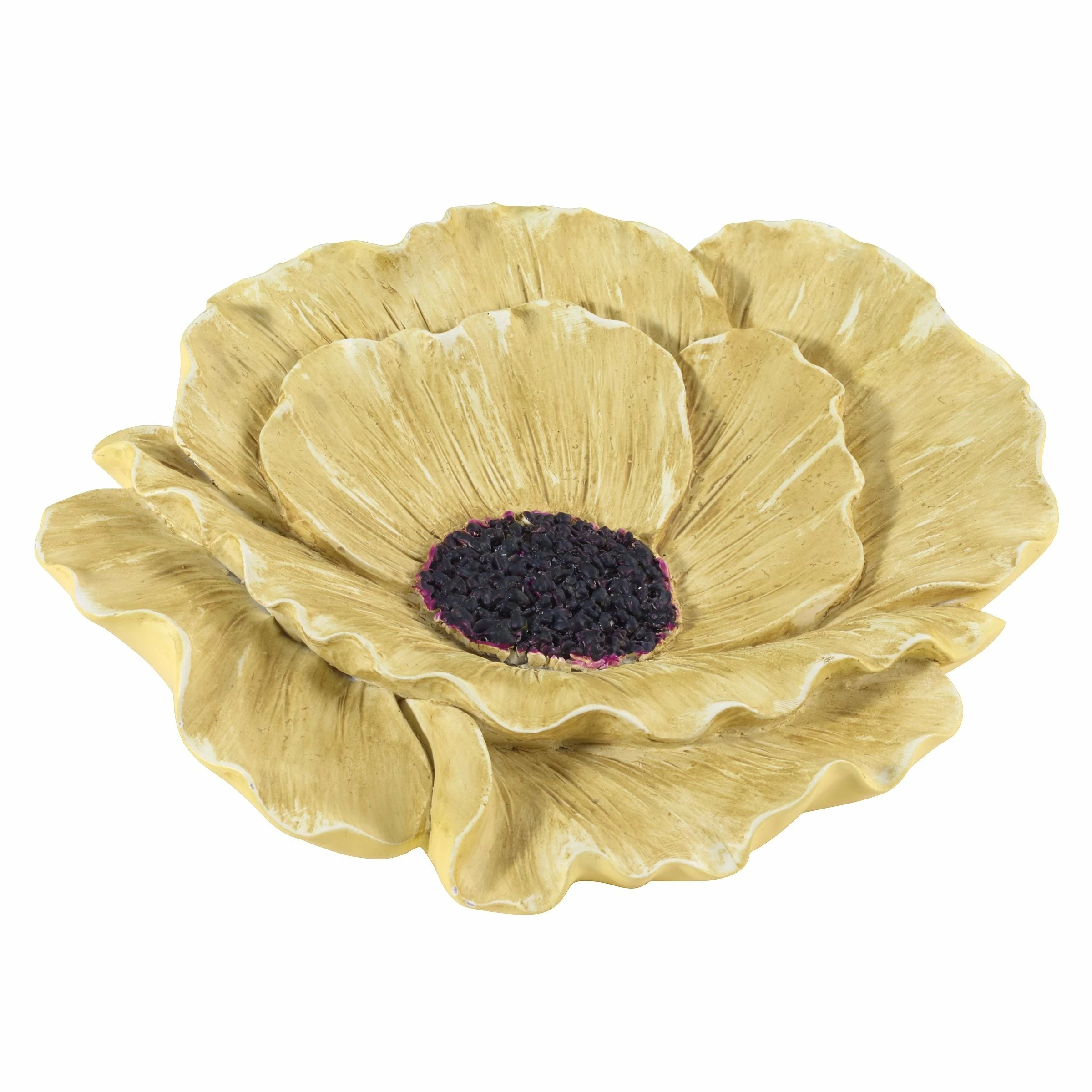 The Avanti Marielle Soap Dish is a figural yellow flower with dark center. Made out of durable, hand-painted resin, wipe clean. Coordinates with matching accessories, shower curtain, rug and towels.