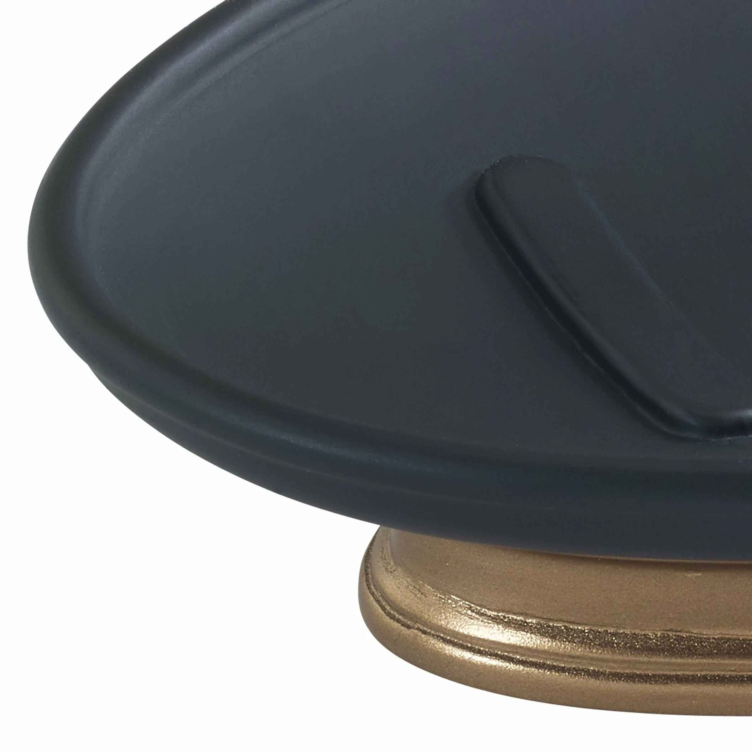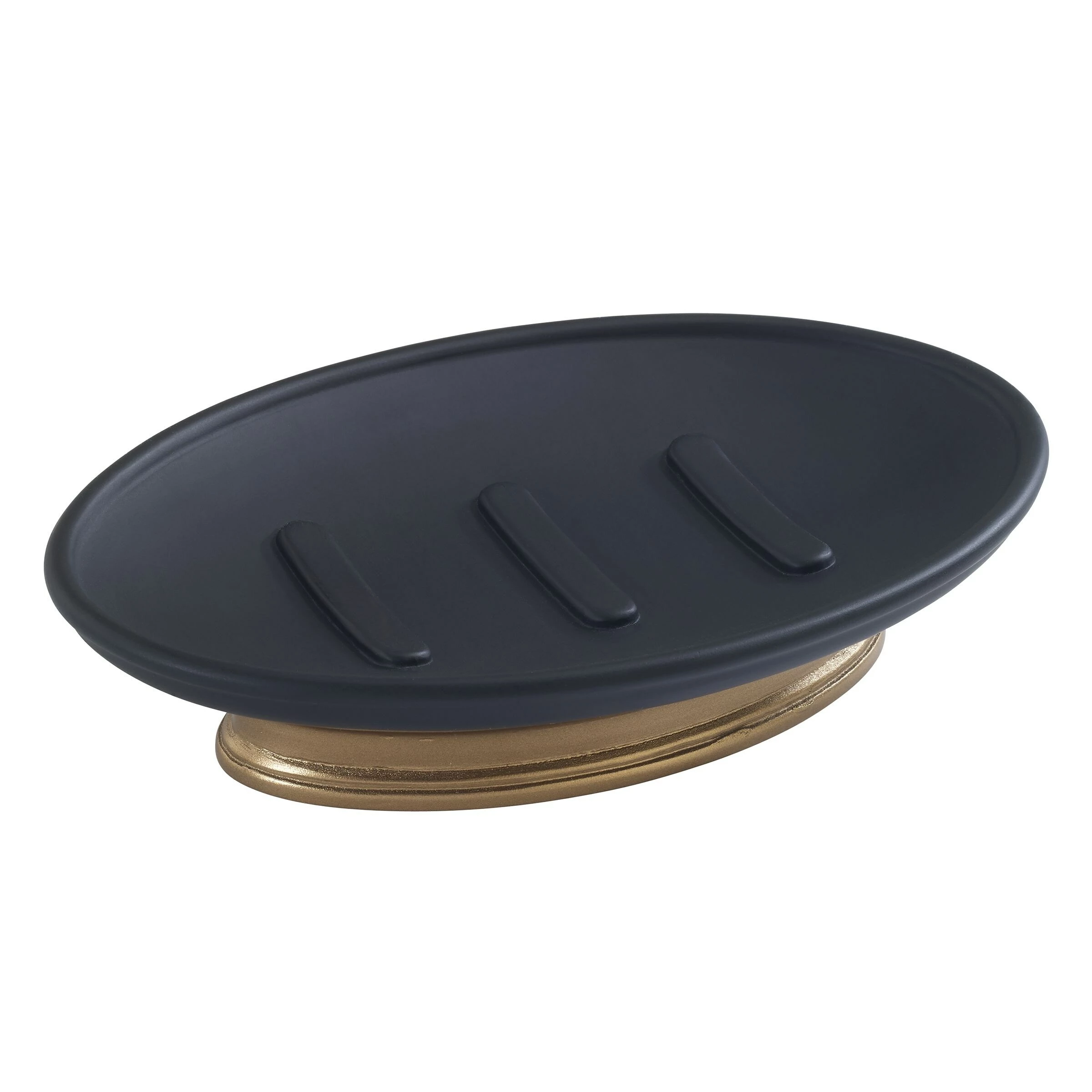 The Avanti Memphis Soap Dish delivers a smooth matte black finish with beveled industrial accents in vintage gold metallic. Crafted in durable resin for long life. Full coordinating bath accessory collection is available. Imported. ย ย ย