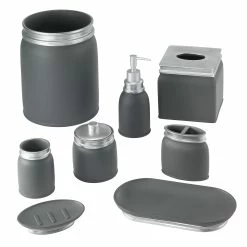 The Avanti Memphis Soap Dish delivers a smooth matte gray finish with beveled industrial accents in vintage silver mette. Crafted in durable resin for long life. Full coordinating bath accessory collection is available. Imported.ย