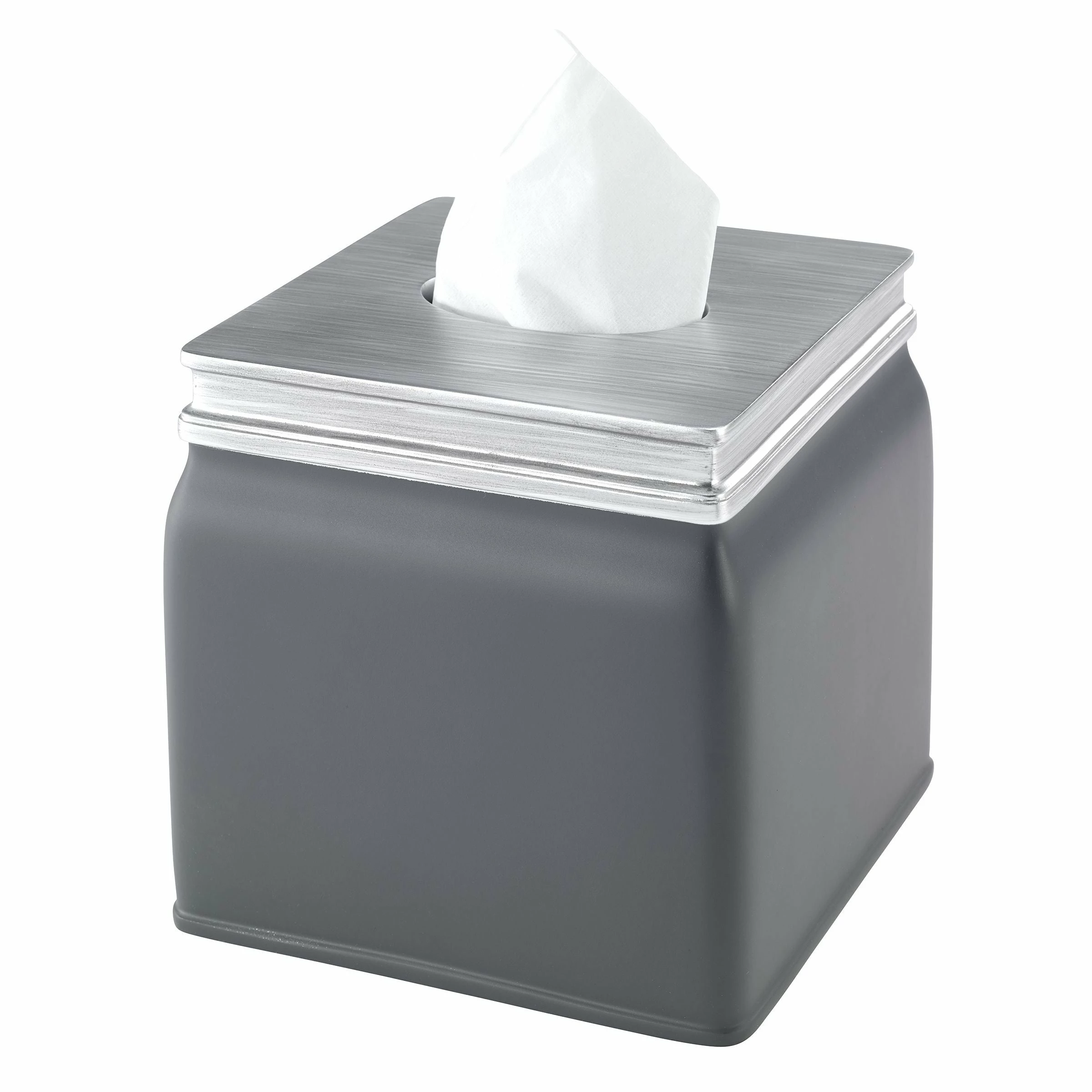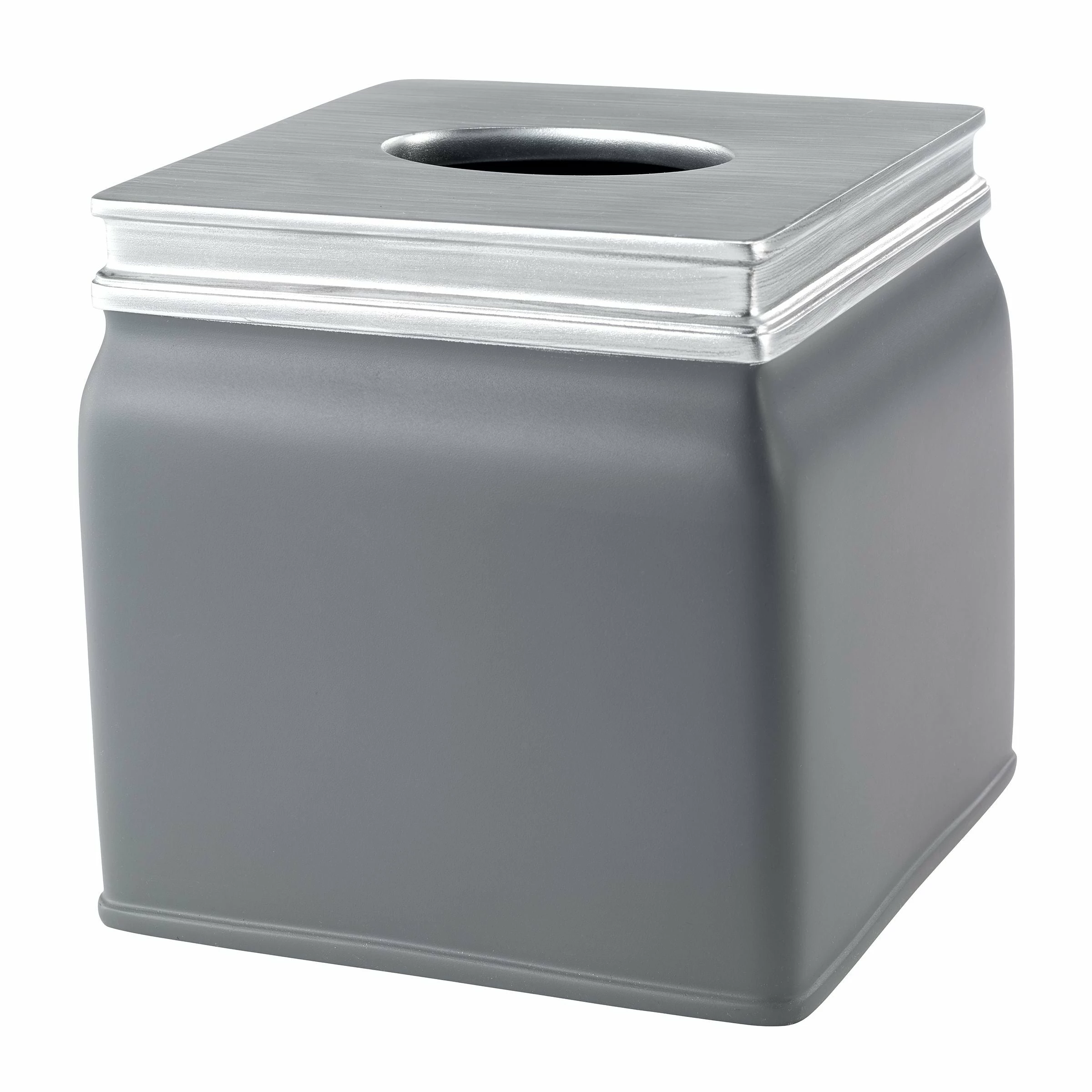 The Avanti Memphis Tissue Cover delivers a smooth matte gray finish with beveled industrial accents in vintage silver mette. Crafted in durable resin for long life. Full coordinating bath accessory collection is available. Imported.ย