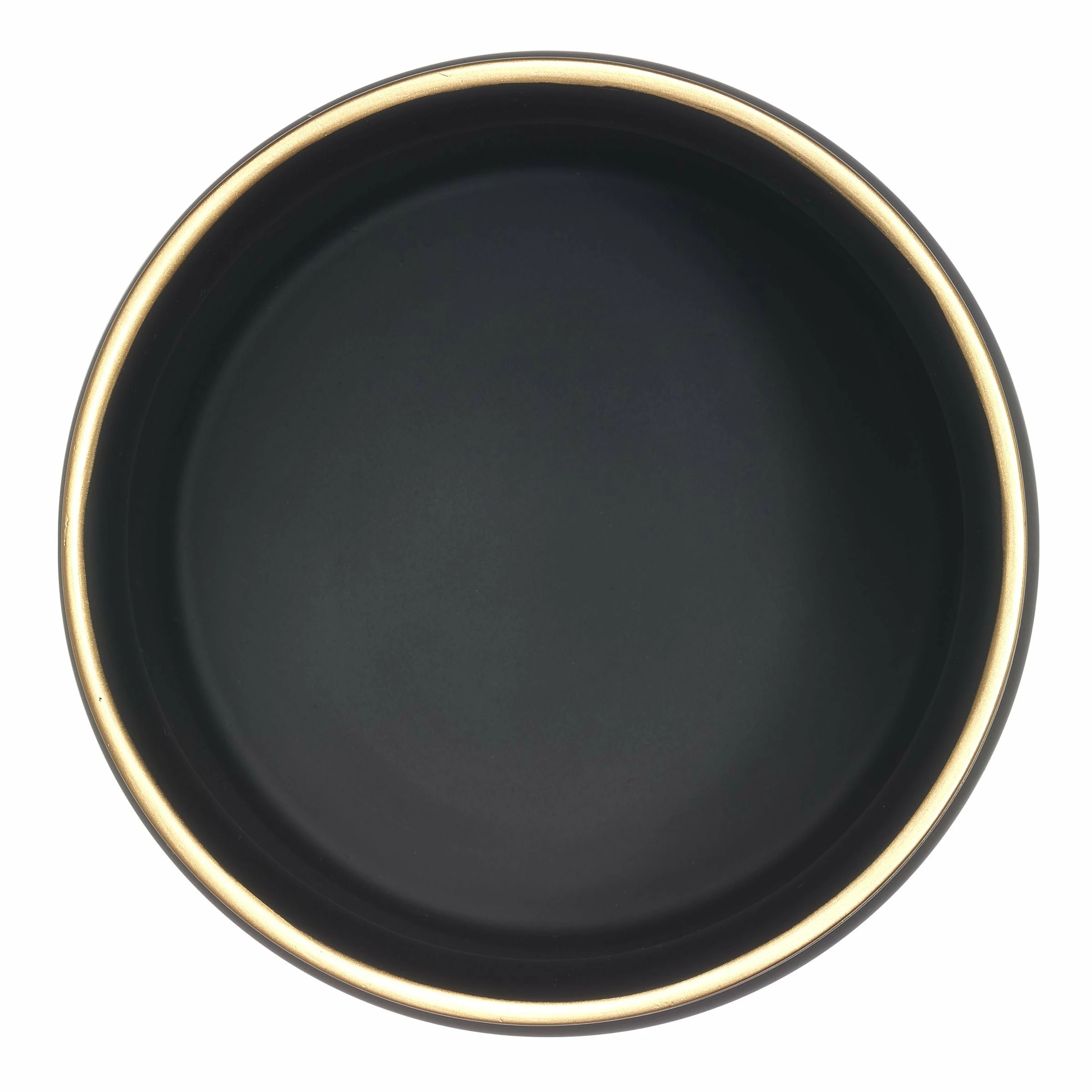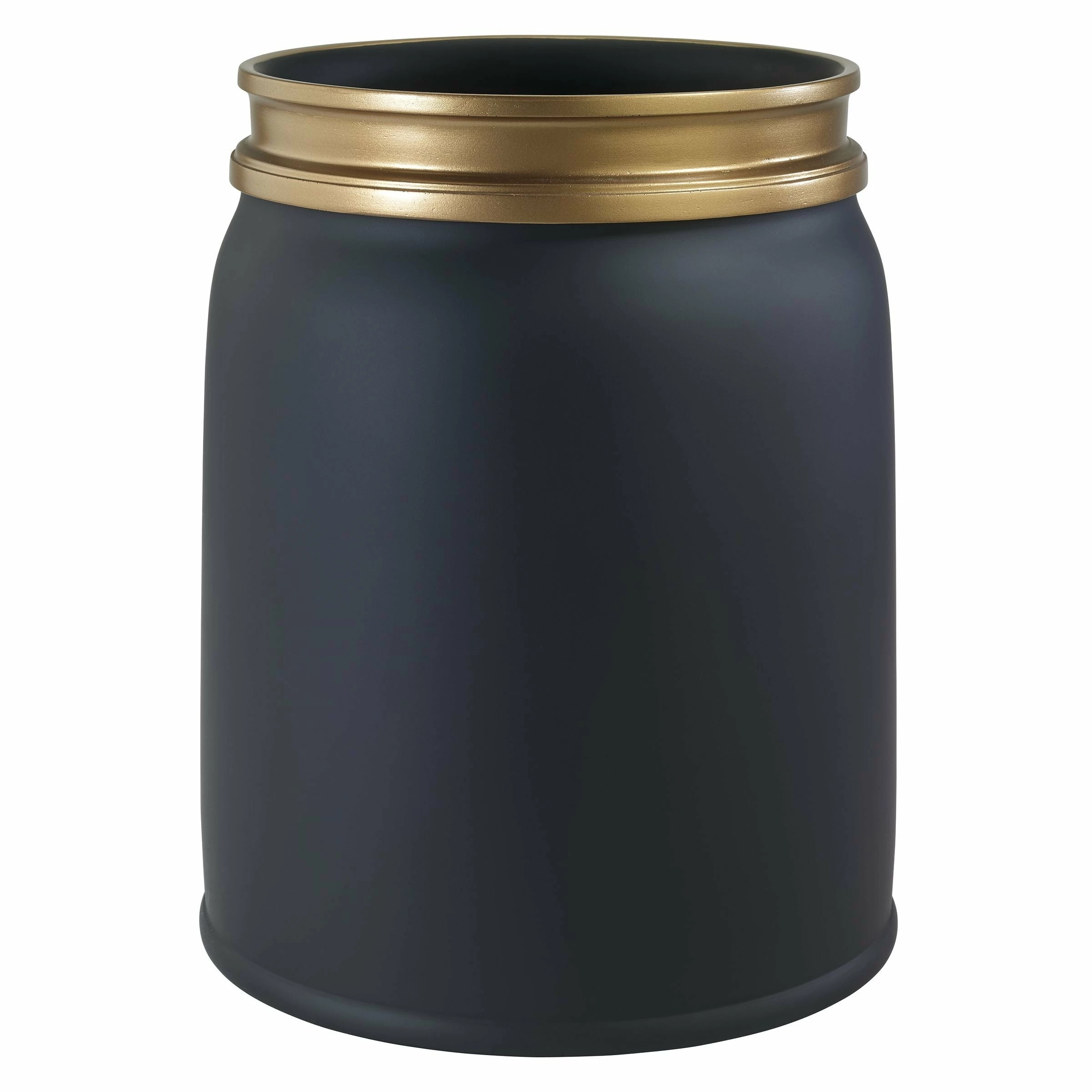 The Avanti Memphis Wastebasket delivers a smooth matte black finish with beveled industrial accents in vintage gold metallic. Crafted in durable resin for long life. Full coordinating bath accessory collection is available. Imported. ย ย ย