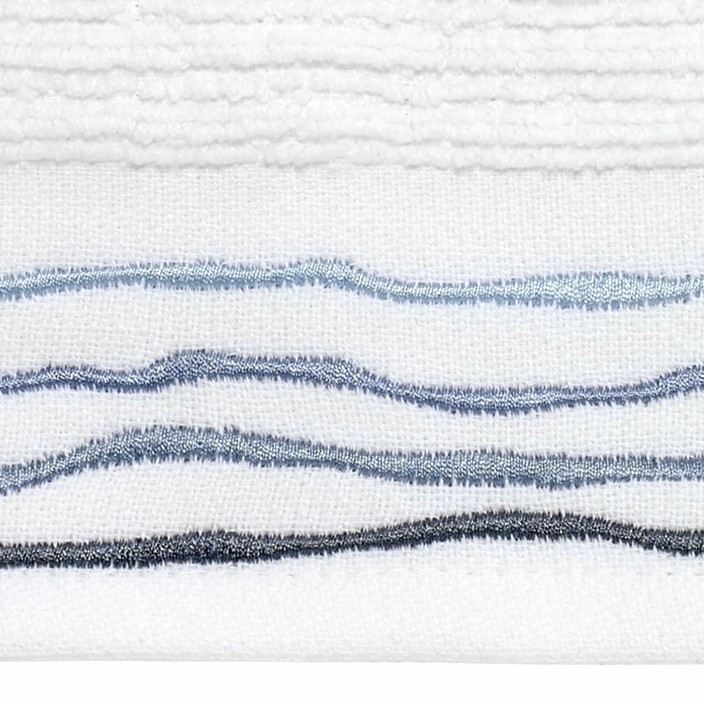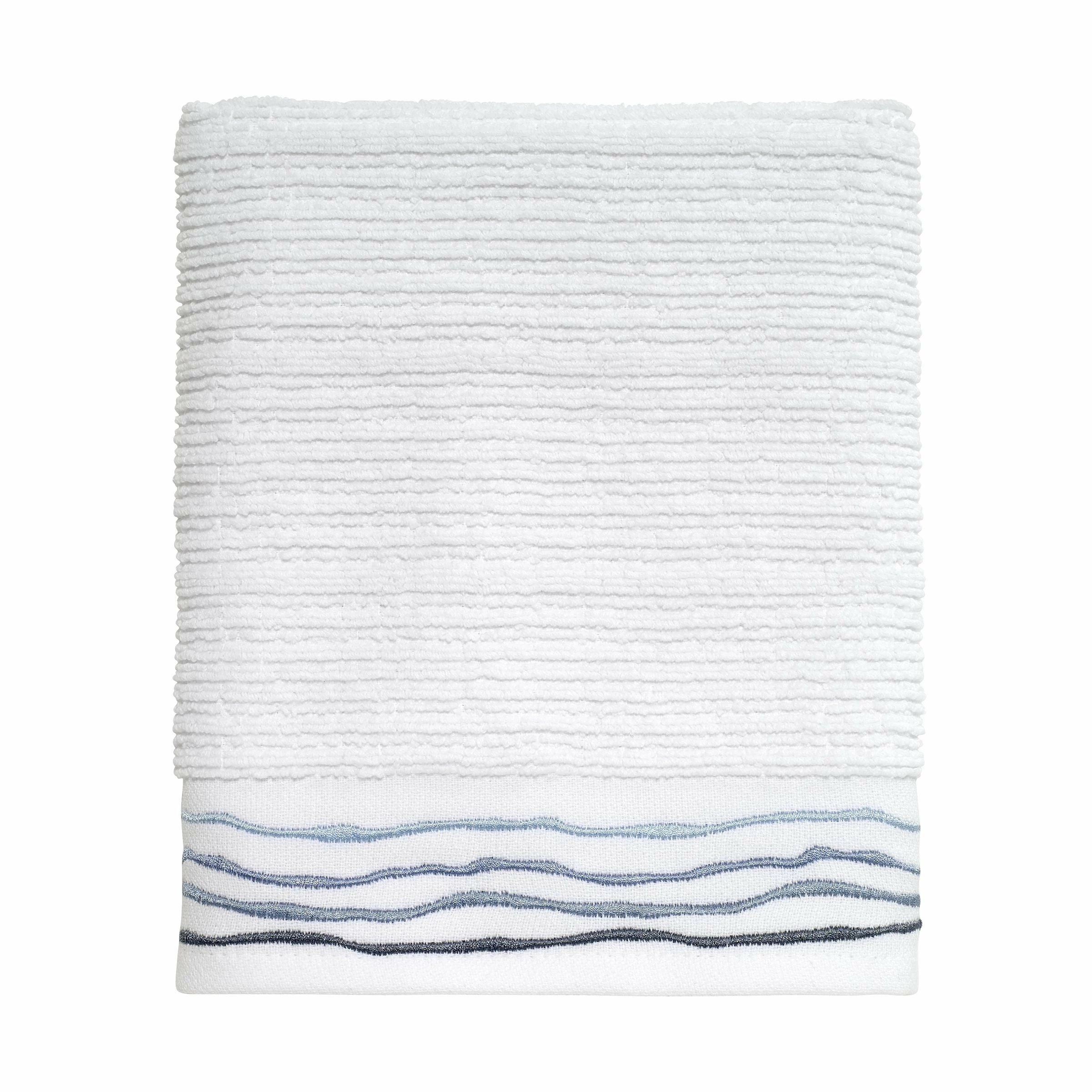 The Avanti Ripple Blue Hand Towel features a wave embroidery on the flat-woven Β Β end-hem in shades of blue. 16 x 28 in. textured terry towel is made of 100% Β Β ringspun cotton for soft feel, superior absorbency. Works with almost any Β Β decor for a clean, updated look. Imported. Β Β Β Β