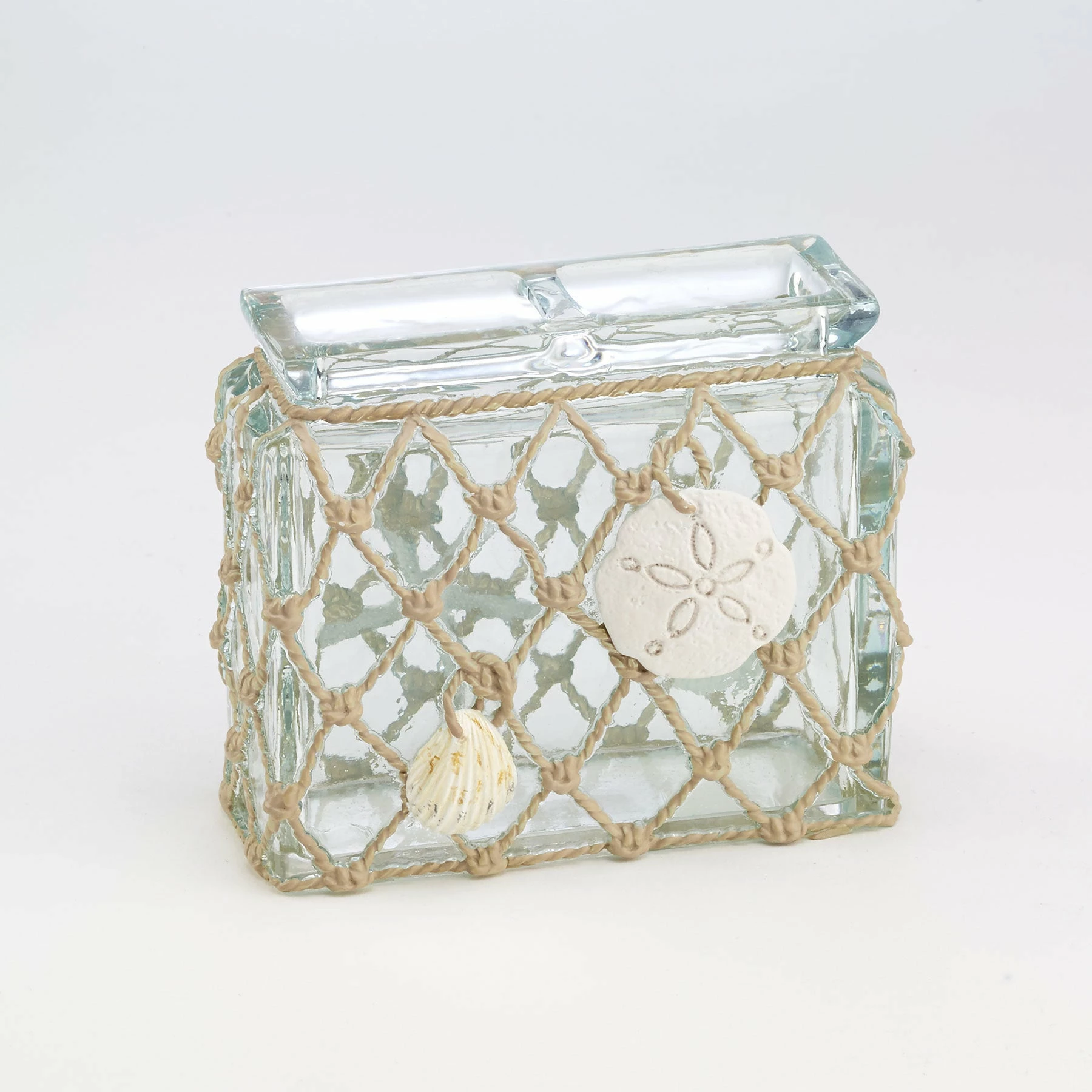 Store your toothbrushes safely in this sea-glass holder. Two separate containers prop your brushes up, keeping the bristles away from debris and enabling them to dry quickly. The durable resin construction resists breaking in a busy bathroom, and the ocean-inspired netting accent lends a nautical vibe.