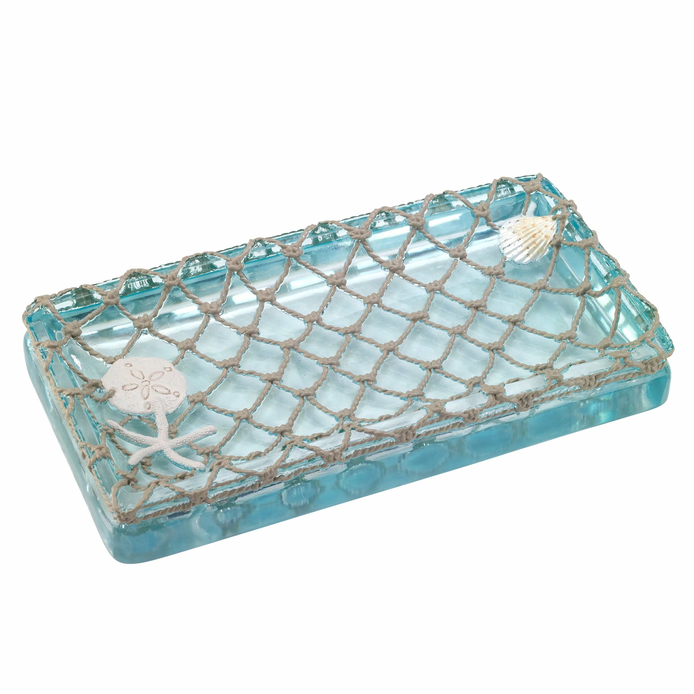 The Avanti Seaglass Tray is crafted in clear blue-green resin covered with hand-painted simulated rope and starfish & shell accents. Measures 5.5″ x 10″ x 1.25″. Can can be used for make-up, knick-knacks or even your keys while adding a beautiful touch of the sea to any room. Imported.