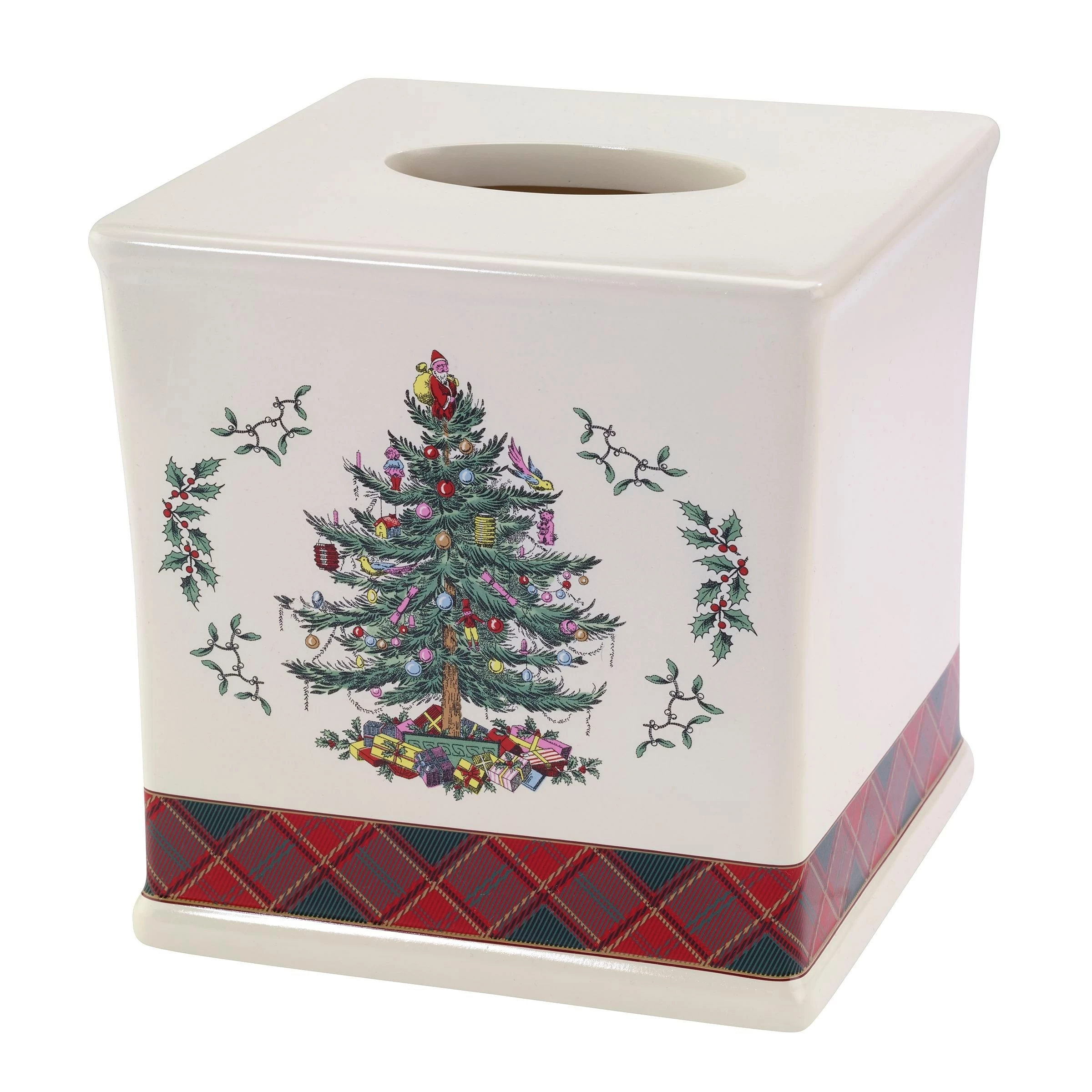 The Spode Christmas Treeยฎ Tartan Tissue Box Cover by Avanti brings a new twist to an old classic. The iconic Spode Christmas Tree, since 1938,is now paired with a green and red tartan plaid border on an ivory body for a fresh look. Made of durable resin, measures 5.75″L x 5.75″W x 5.88″H. Imported.