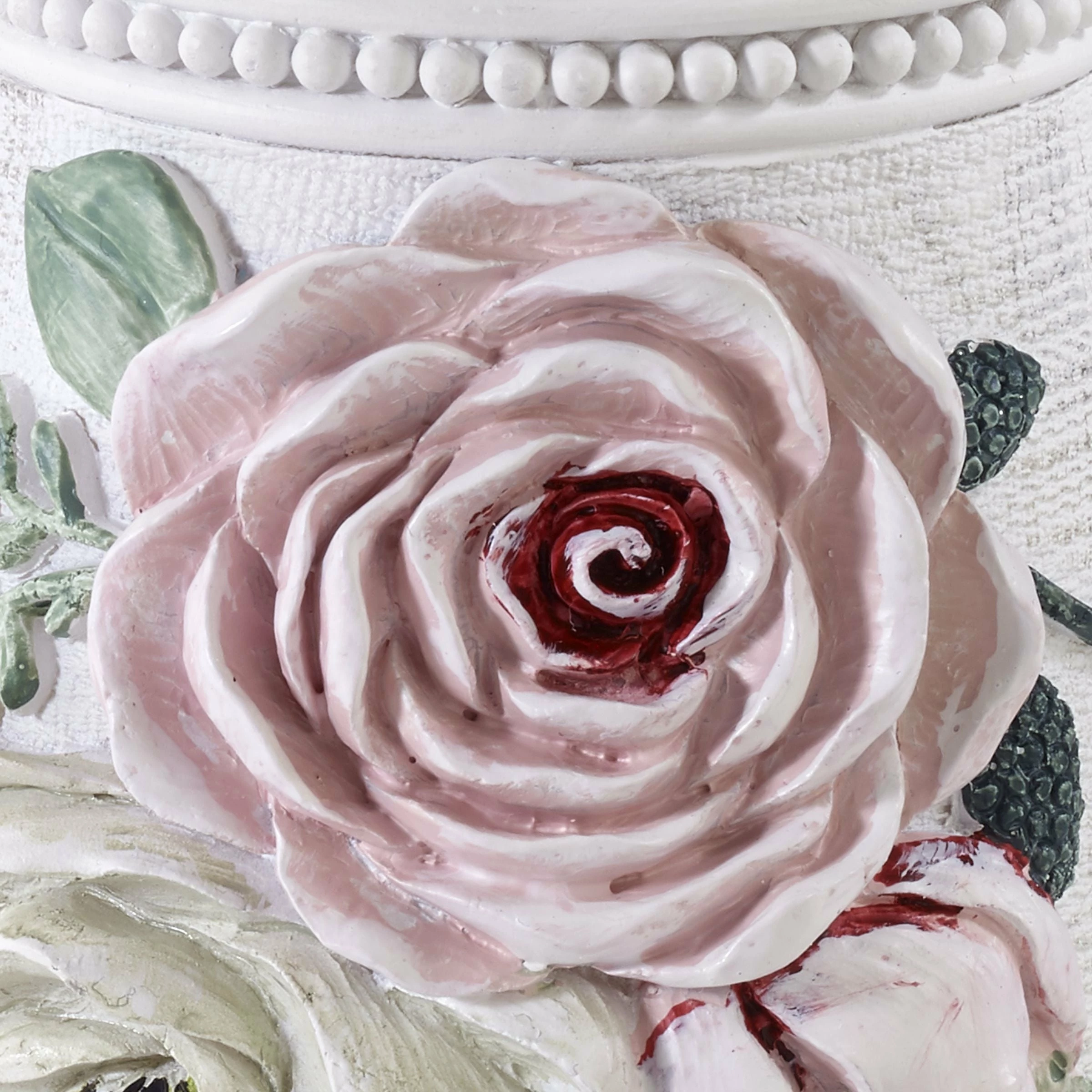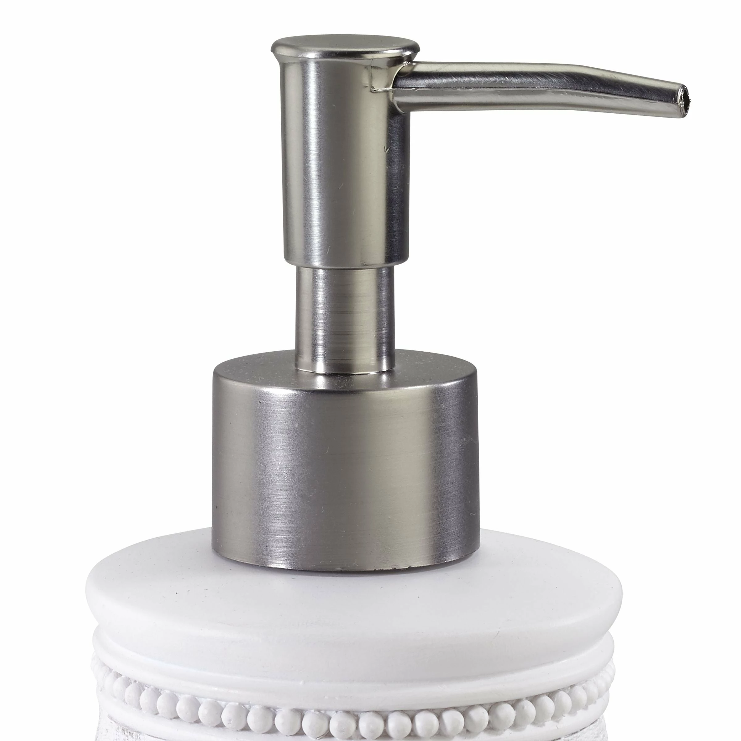 The Avanti Spring Garden Collection Lotion, Soap and Sanitizer Dispenser is embossed with dimensional peonies in pink and white with green leaves on an off-white textured ground .Made of durable, hand-painted resin. Coordinating accessories, shower curtain, rug and towel also available. Imported