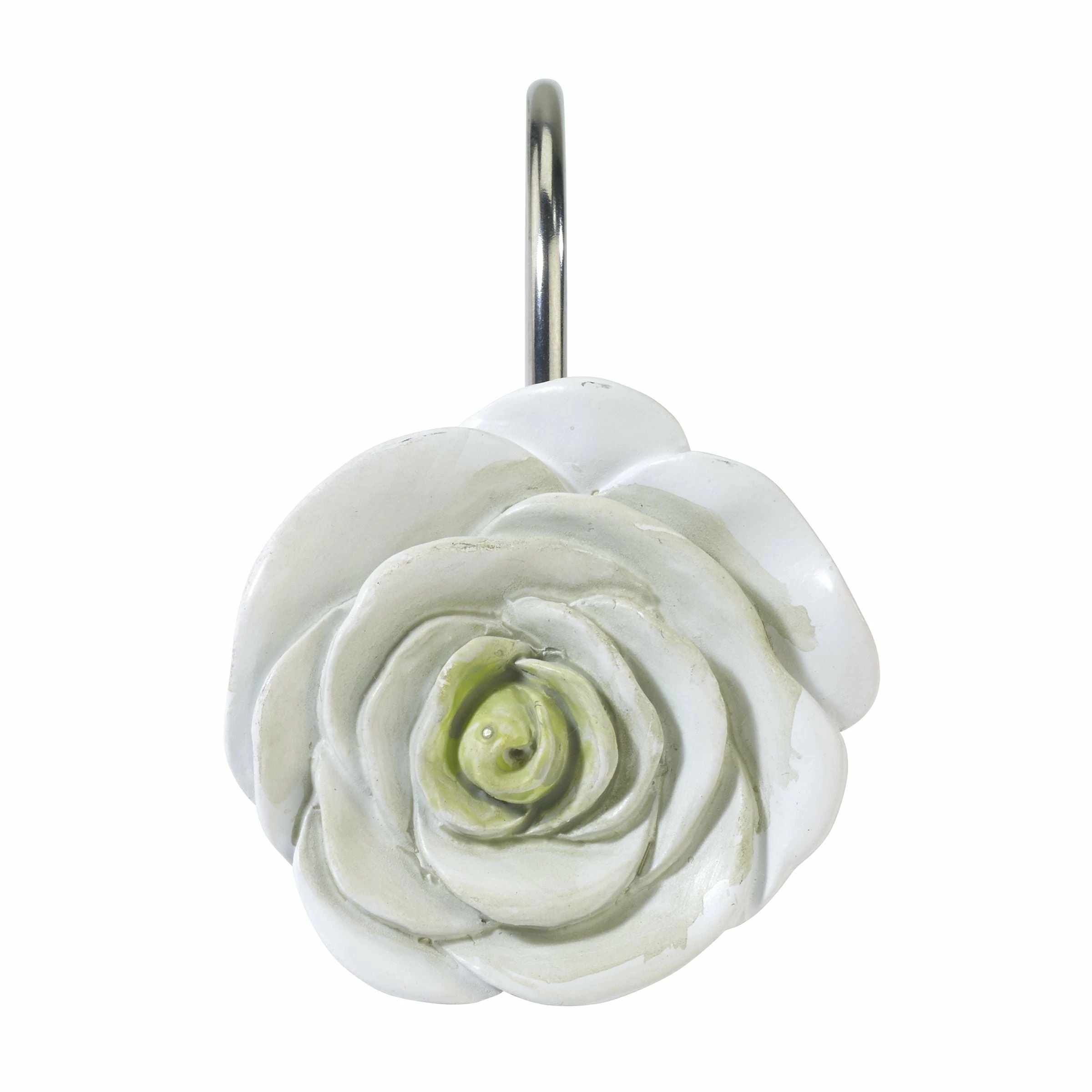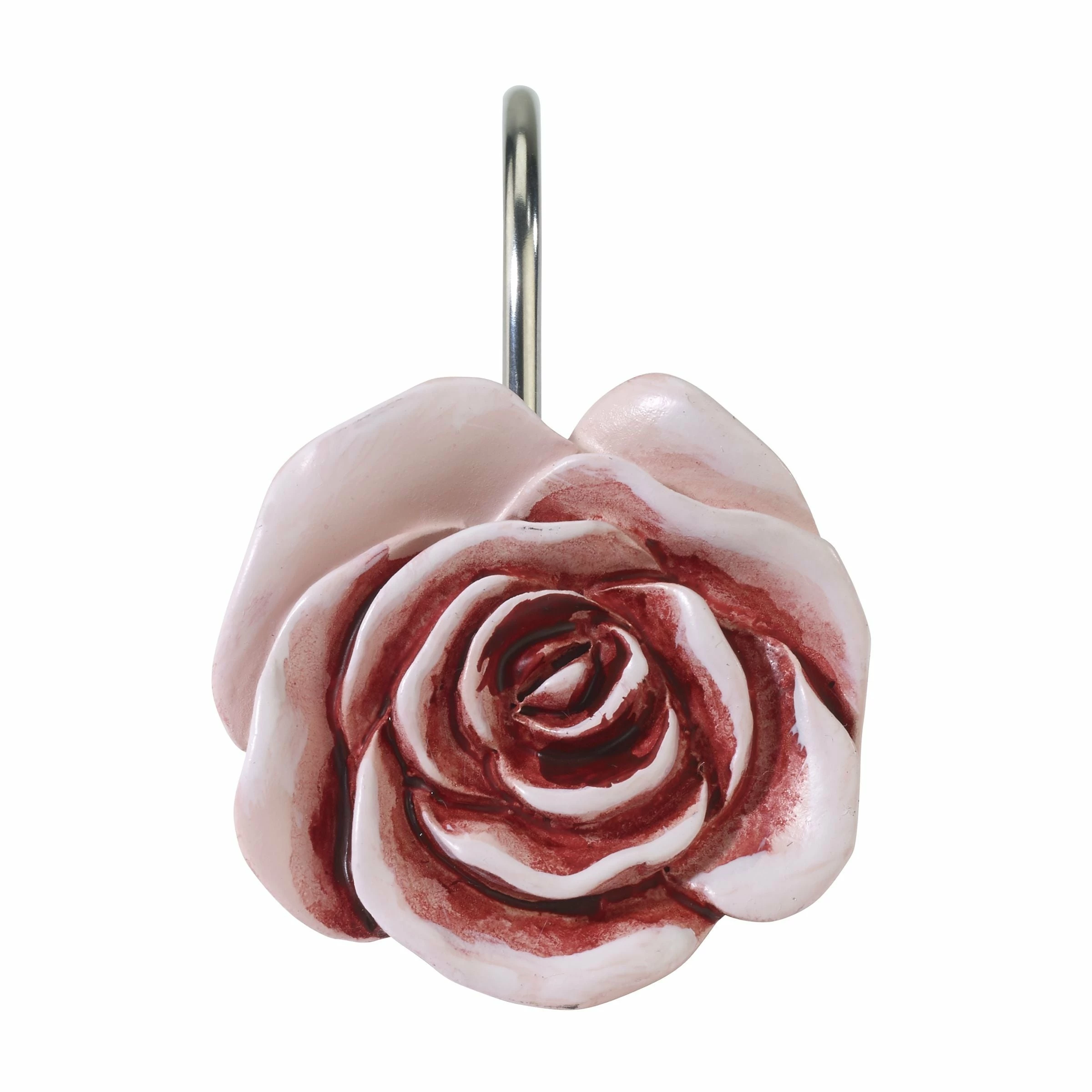 The Avanti Spring Garden Collection Shower Curtain Hook Set features 3 different colored peonies in shades of pink and white. Made of durable hand-painted resin and coordinates perfectly with the matching shower curtain, accessories, towels and rug. Set of 12, 4 of each design. Imported.