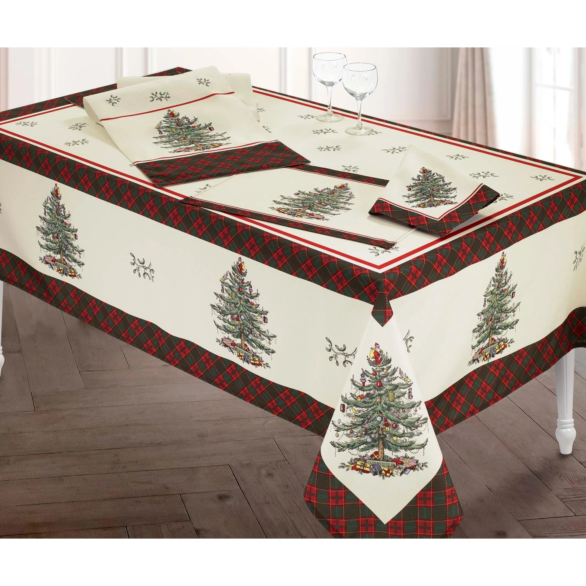The Spode Christmas Tree® Tartan Set of Four 20″ x 20″ Napkins is a new twist on an old classic. The iconic Spode Christmas Tree that’s been around since 1938 is still the main attraction here, but it is now paired with a green and red tartan plaid that gives it a fresh, new look. With the Christmas Tree in the corner and the napkin bordered by the tartan plaid, this is sure to become a new favorite. Off-white, 100% polyester. Imported.