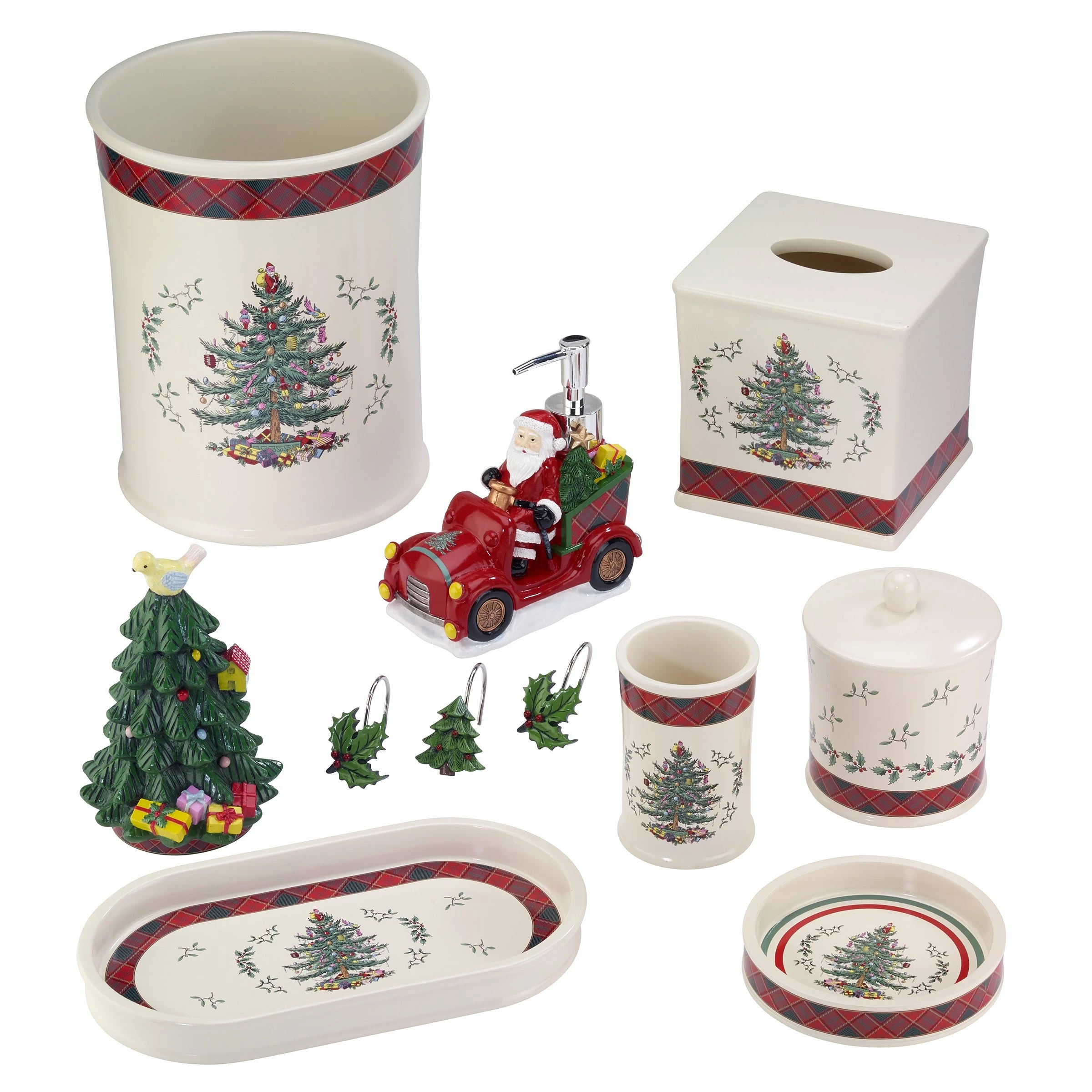 The Spode Christmas Treeยฎ Tartan Soap Dish by Avanti brings a new twist to an old classic. The iconic Spode Christmas Tree, since 1938, is now paired with a green and red tartan plaid border on an ivory body that gives it a fresh, new look. Made of durable resin, measures 5″L x 5″W x 1″H. Imported.