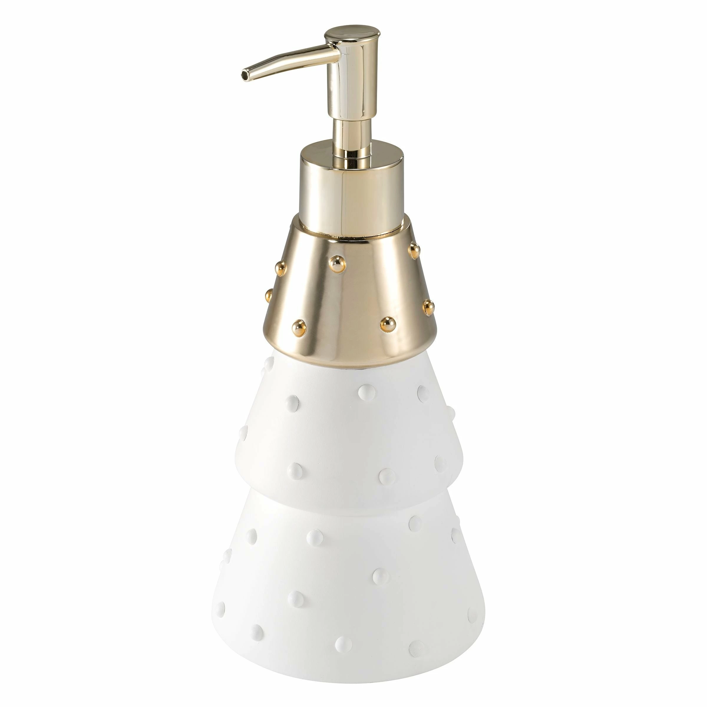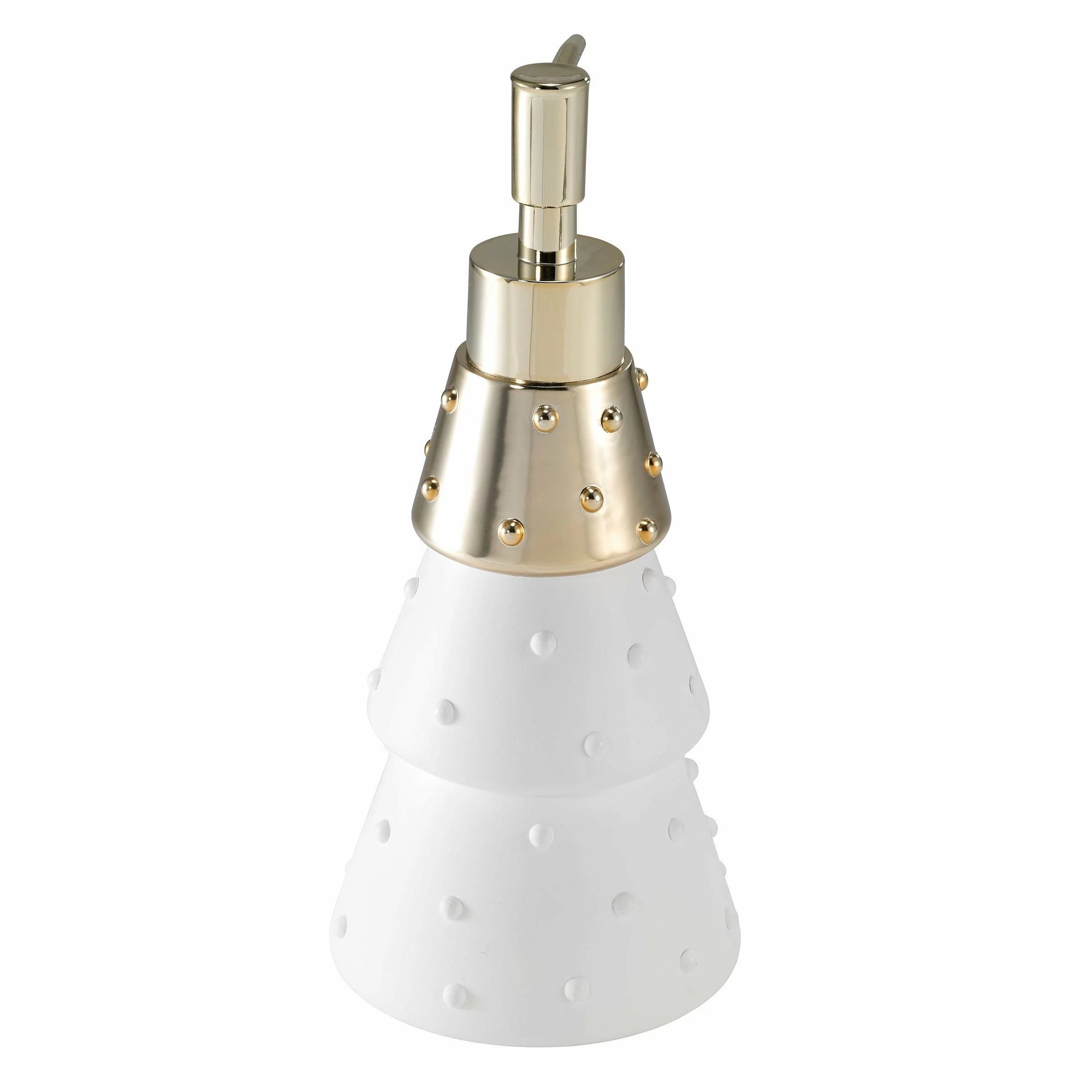 The Avanti White Tree with Gold Top Lotion/ Soap/ Sanitizer Dispenser is a modern-shaped white tree decorated with an electroplated gold top for a touch of holiday glam. Made of durable, hand-painted resin, 8 ” H x 3.3″ W x 3.3″ D. Makes a great addition to any bathroom, kitchen or office.