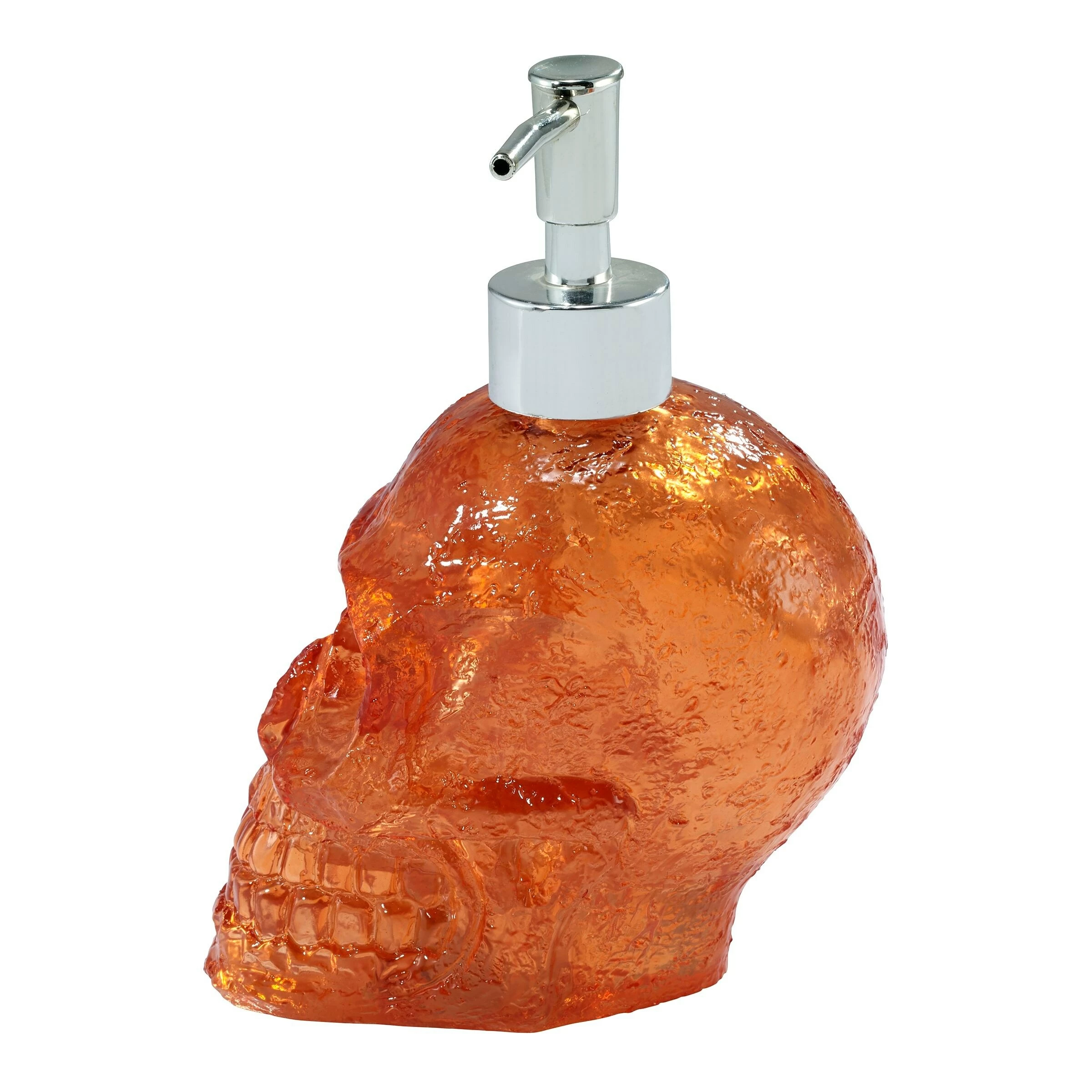 The Avanti Wilson Skull with Light Lotion/ Soap/ Sanitizer Dispenser is a translucent orange, figural skull that lights up when switch on bottom is activated. Shiny silver pump finishes the look. Made of durable, hand-painted resin, 5.1″L x 3.4″W x 6.9″H, 3 LR44 batteries included.
